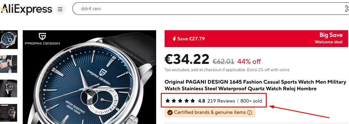 - Product and seller Ratings: Check the ratings and reviews of products to ensure credibility. Ideally, you want high rating, a lot of reviews and a lot of units sold. The more people bought the product the more realistic rating should be. You can also click on “Reviews” to read individual review of each buyer. Here you can find some details that you maybe won’t find in product description