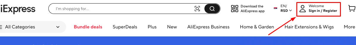 - Visit the Aliexpress website or download the app.